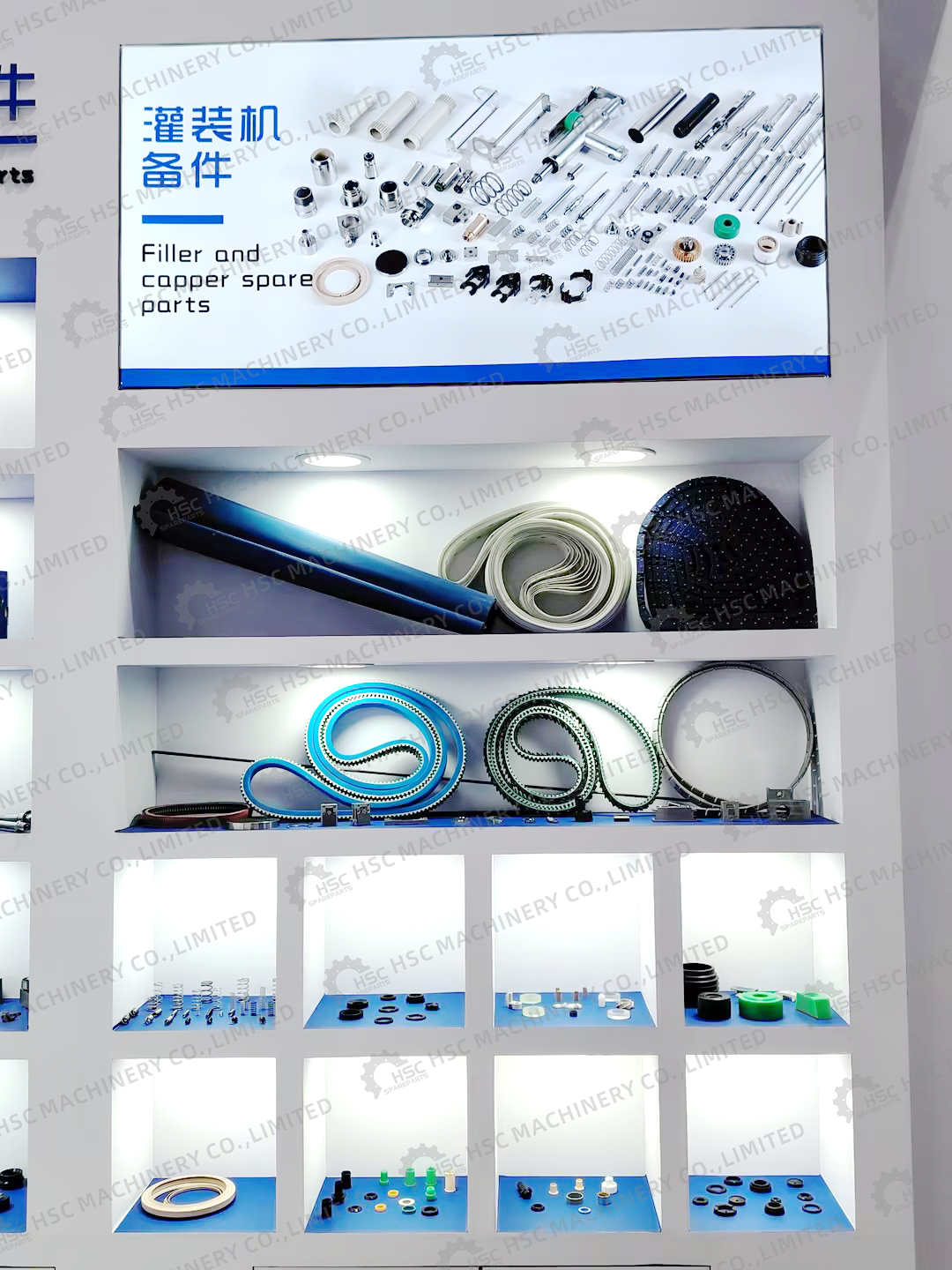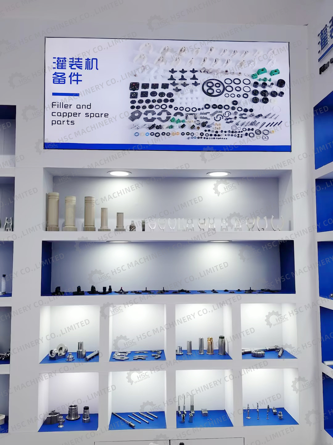 With over 20 years of industry experience, HSC presented a range of spare parts designed for leading equipment brands such as Krones, KHS, Sidel, and Husky. The booth featured neatly arranged parts for stretch blow molding machines, filling machines, capping machines, and more,
